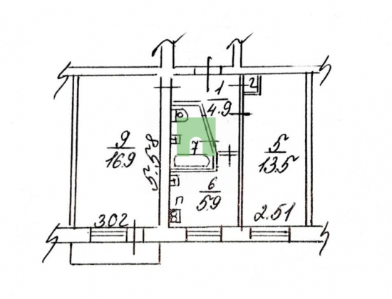 Двухкомнатная квартира в кирпичном доме