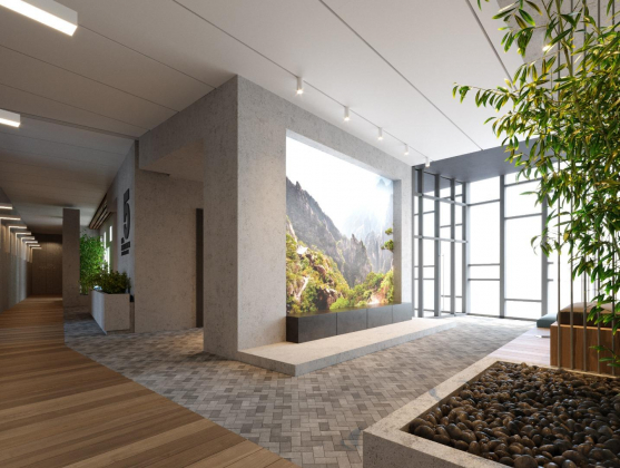- общая зона с амфитеатром и видеопроектором в холле;